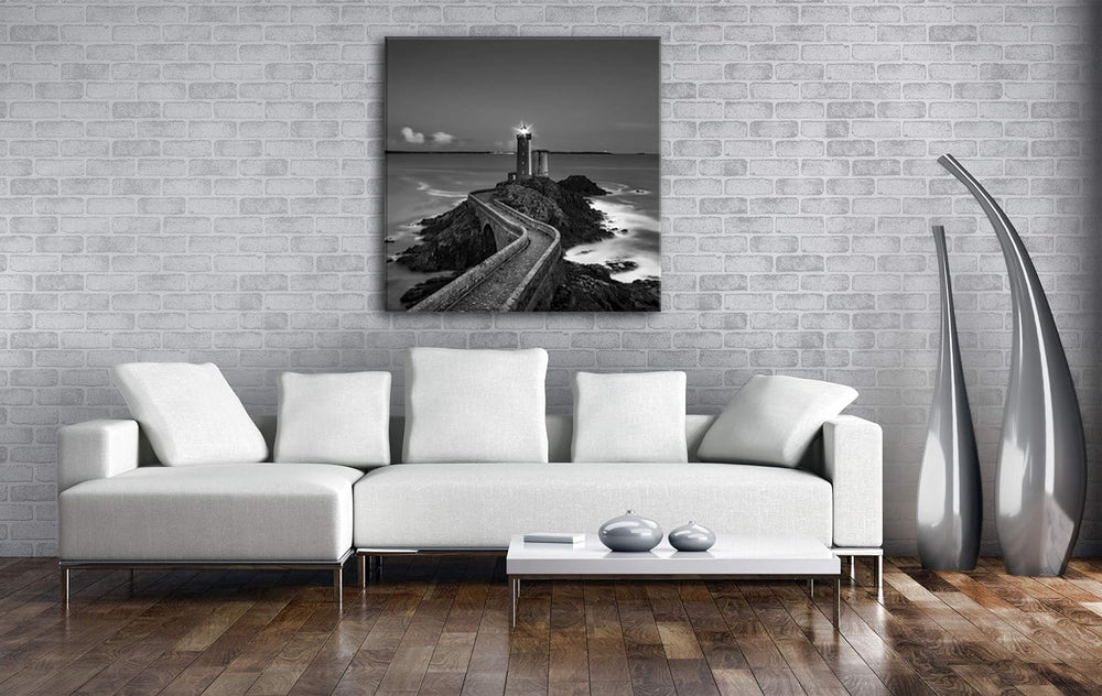 deyoli Leuchtturm in Maine Format: 80x60 cm Effekt: Schwarz/Weiss als Leinwandbild, Motiv fertig ger