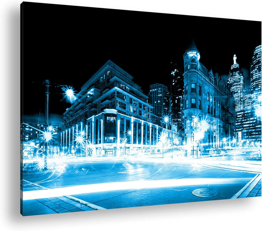 deyoli leuchtende Strassen von Toronto Format: 80x60 Effekt: Monocrome Blau als Leinwand, Motiv fert