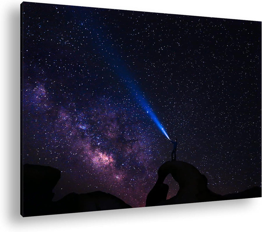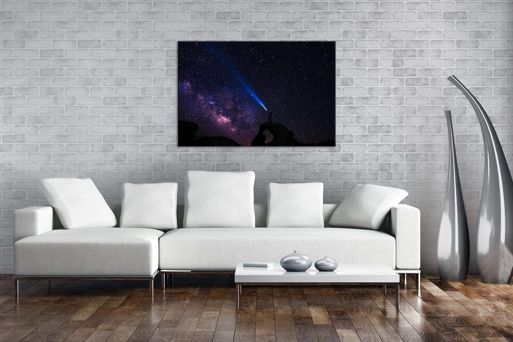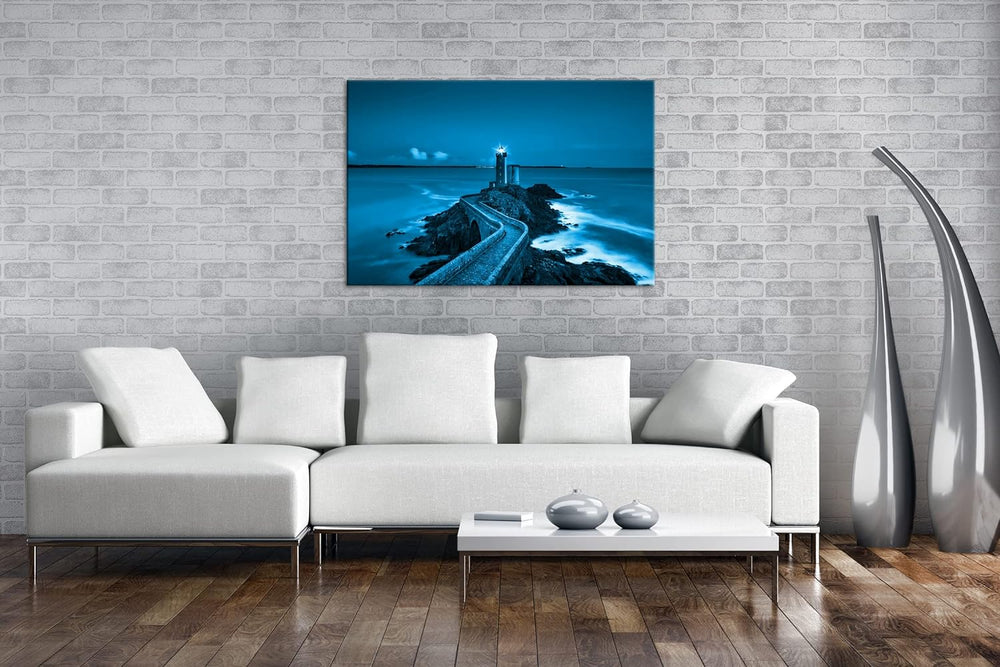 deyoli Leuchtturm bei Nacht Format: 80x60 Effekt: Monocrome Blau als Leinwandbild, Motiv fertig gera