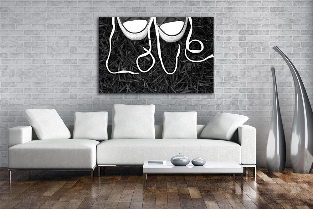 deyoli Love Sneaker Schnürsenkel Format: 70x70 Effekt: Schwarz&Weiss als Leinwandbild, Motiv fertig