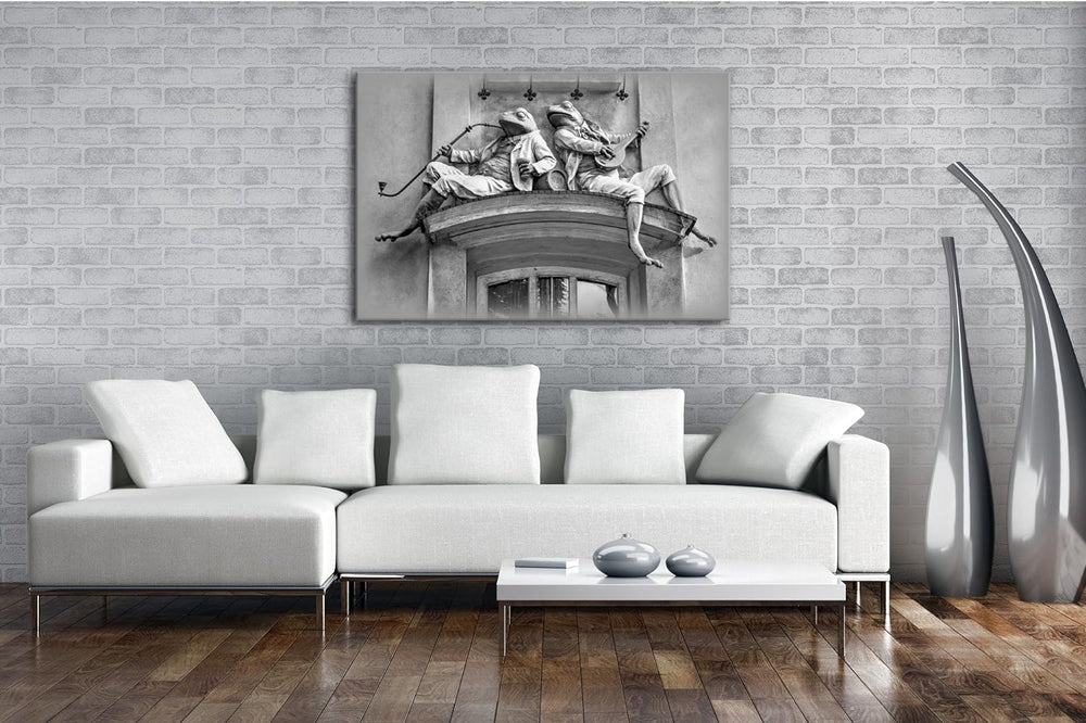 deyoli lustige Froschmenschen Skulpturen Effekt: Schwarz/Weiss Format: 100x70 als Leinwandbild, Moti