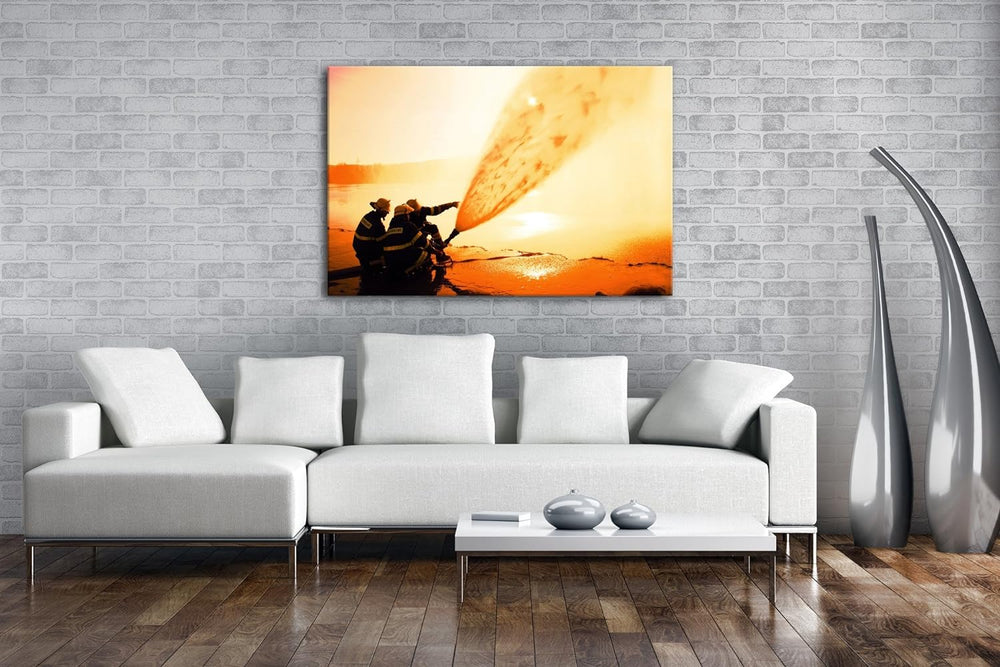 deyoli Löscharbeiten bei Feuer Format: 80x60 als Leinwandbild, Motiv fertig gerahmt auf Echtholzrahm