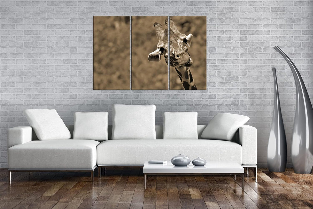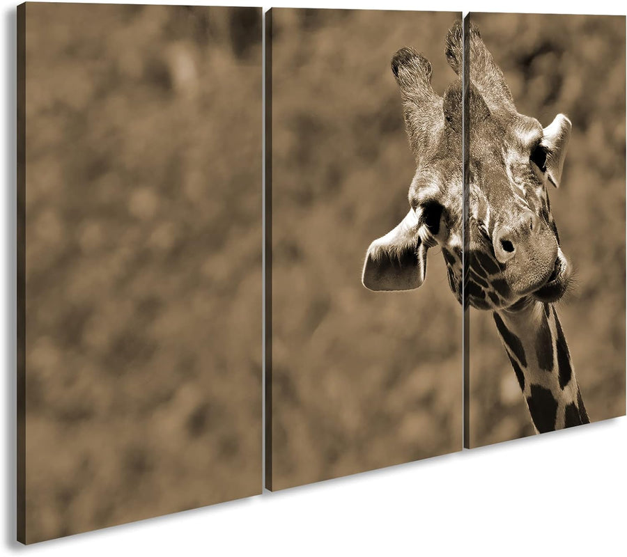 deyoli lustige Giraffe Format: 120x80 cm (3Teilig) Effekt: Sepia als Leinwandbild, Motiv fertig gera