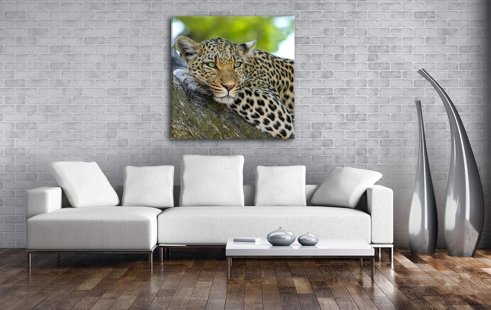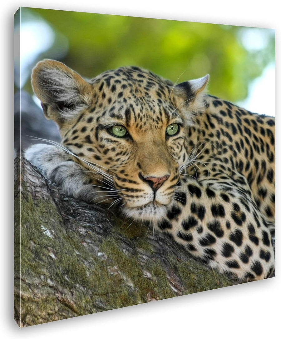 deyoli liegender Leopard im Format: 60x60 als Leinwandbild, Motiv fertig gerahmt auf Echtholzrahmen,