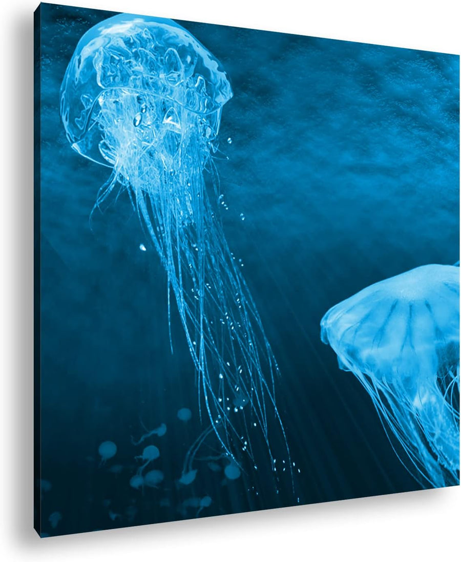deyoli leuchtende Quallen Format: 70x70 Effekt: Monocrome Blau als Leinwandbild, Motiv fertig gerahm