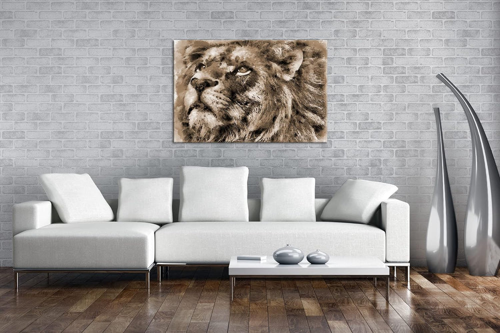 deyoli Löwen Porträt Format: 80x60 Effekt: Sepia als Leinwandbild, Motiv fertig gerahmt auf Echtholz
