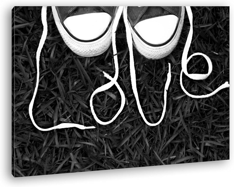 deyoli Love Sneaker Schnürsenkel Effekt: Schwarz/Weiss Format: 100x70 als Leinwandbild, Motiv fertig