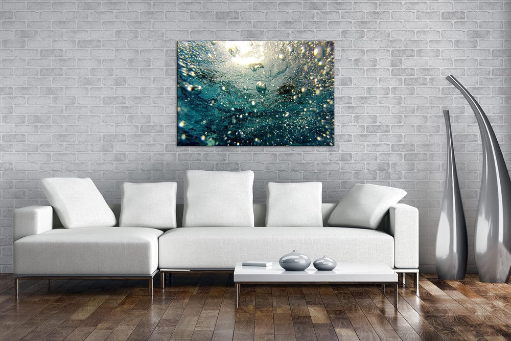 deyoli Luftblasen im blauen Wasser im Format: 100x70 als Leinwandbild, Motiv fertig gerahmt auf Echt