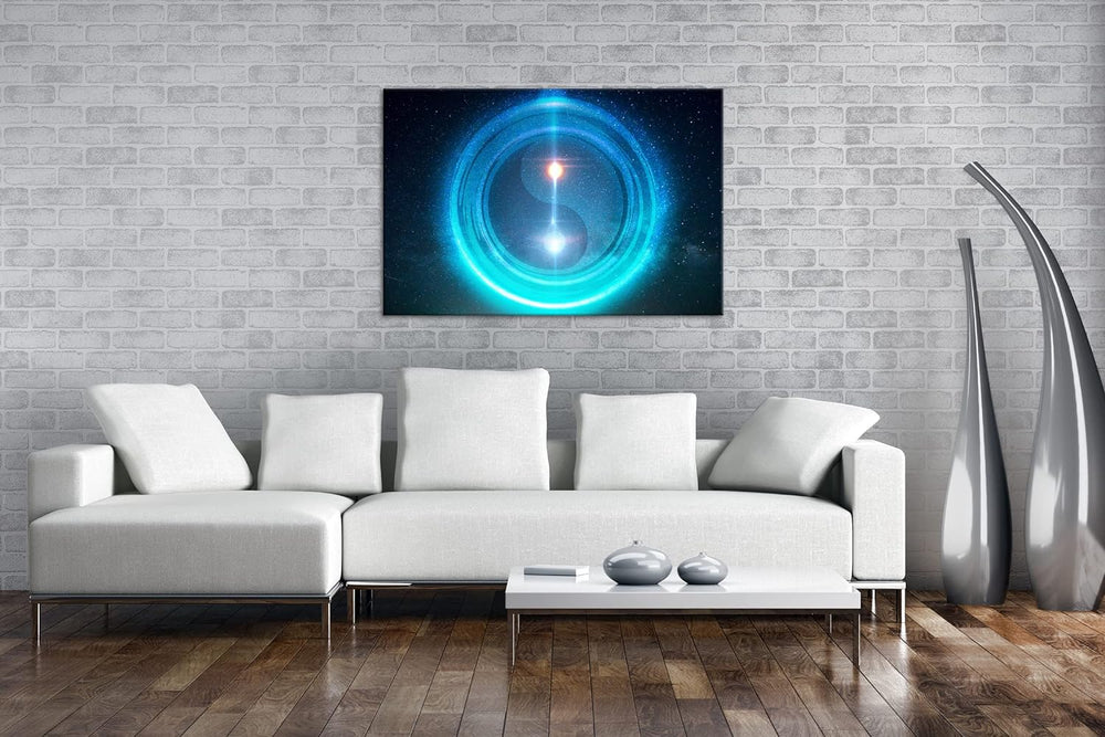 deyoli leuchtendes Ying Yang Symbol Format: 80x60 als Leinwandbild, Motiv fertig gerahmt auf Echthol