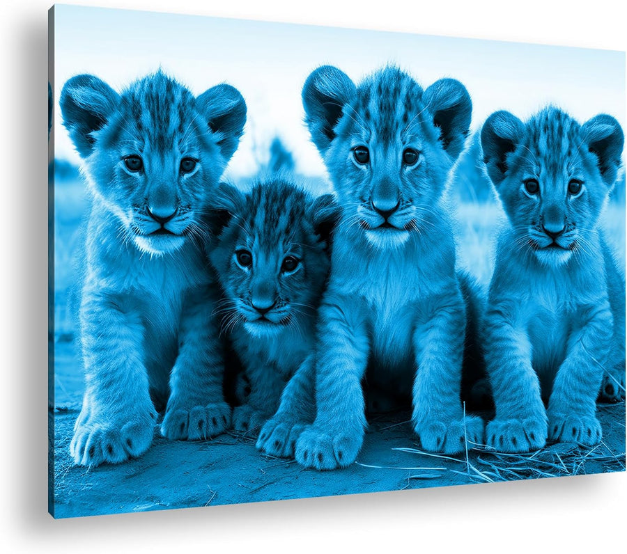 deyoli Löwenjungen in Afrika Format: 80x60 cm Effekt: Monocrome Blau als Leinwandbild, Motiv fertig