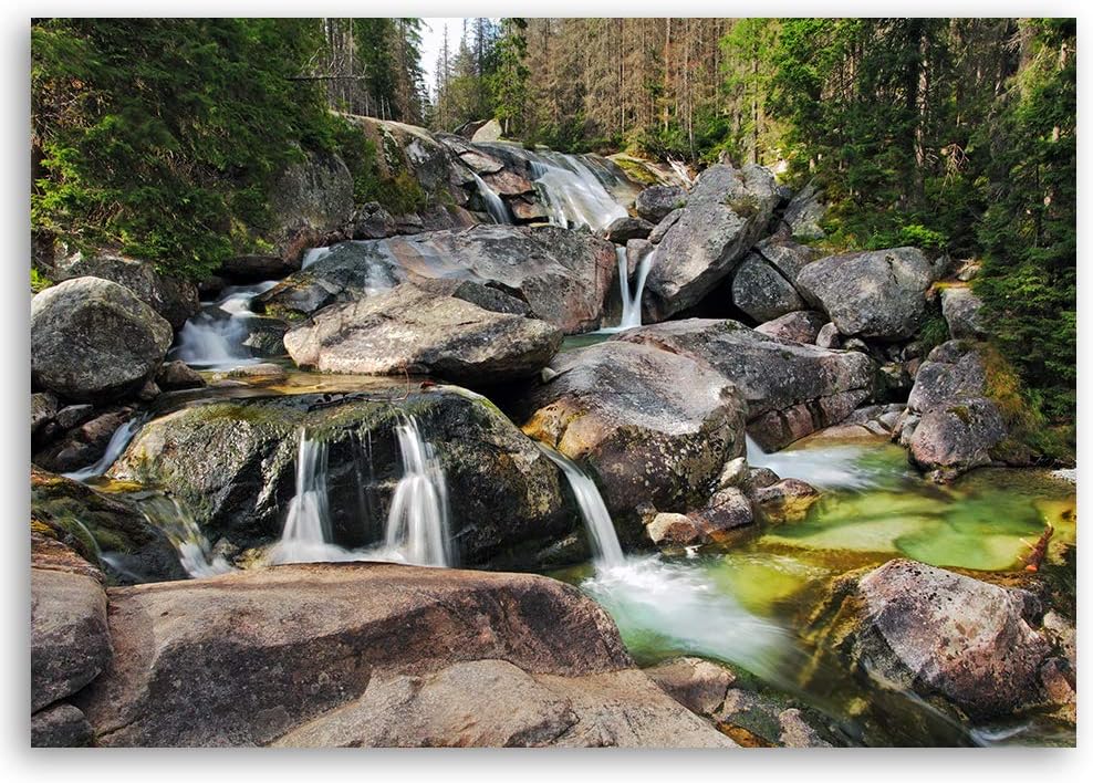 Wandbild Bach Modern Deko Kunst Bilder Wald Grün 90x60 cm