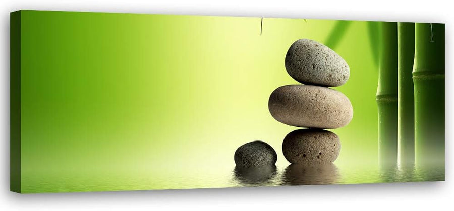 Leinwandbild XXL Zen Steine Wandbild Kunst Bambus Grün 150x50 cm Leinwandbild 150x50 cm Grün_b, Lein