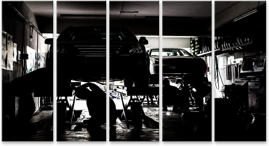 islandburner Bild auf Leinwand Silhouette Mechaniker Wartung Von Autos Werkstatt Bilder Wandbilder P