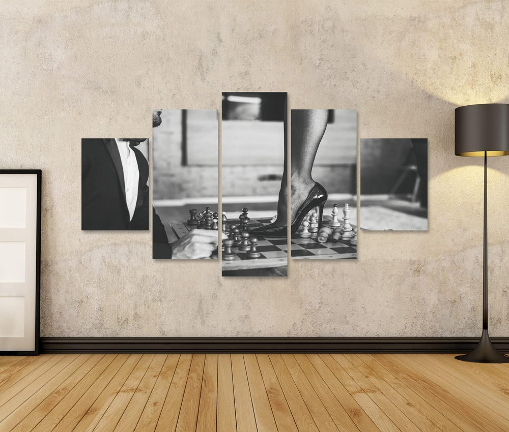 islandburner Bild auf Leinwand Sexy Frauen Bein ings Strümpfe High Heels Mit Schachbrett Schwarz Wei