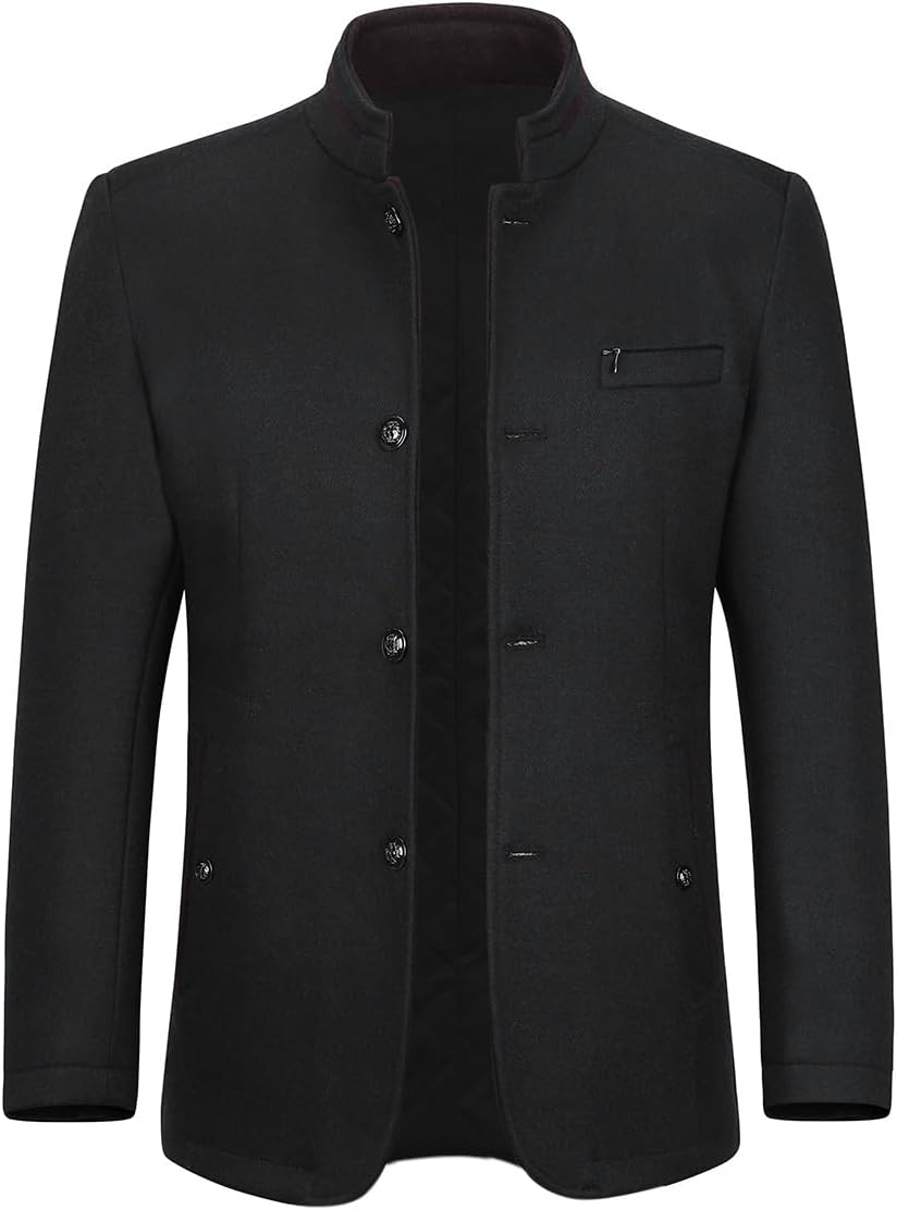 Allthemen Wintermantel Herren Kurzmantel Slim Fit Mantel mit Stehkragen Wolle Warm Wollmantel Busine