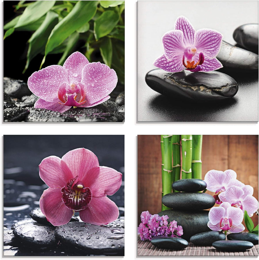ARTland Glasbilder Wandbild Glas Bild Set 4 teilig je 20x20 cm Quadratisch Asien Wellness Zen Spa St