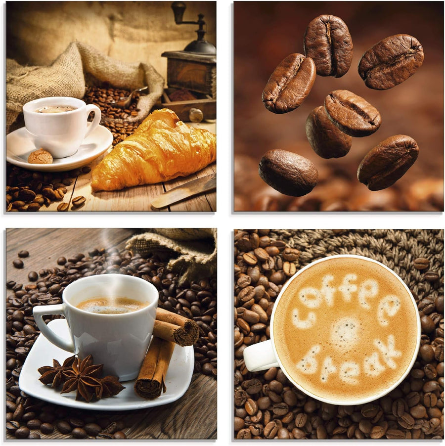ARTland Glasbilder Wandbild Glas Bild Set 4 teilig je 20x20 cm Quadratisch Kaffee Cafe Coffee Cappuc