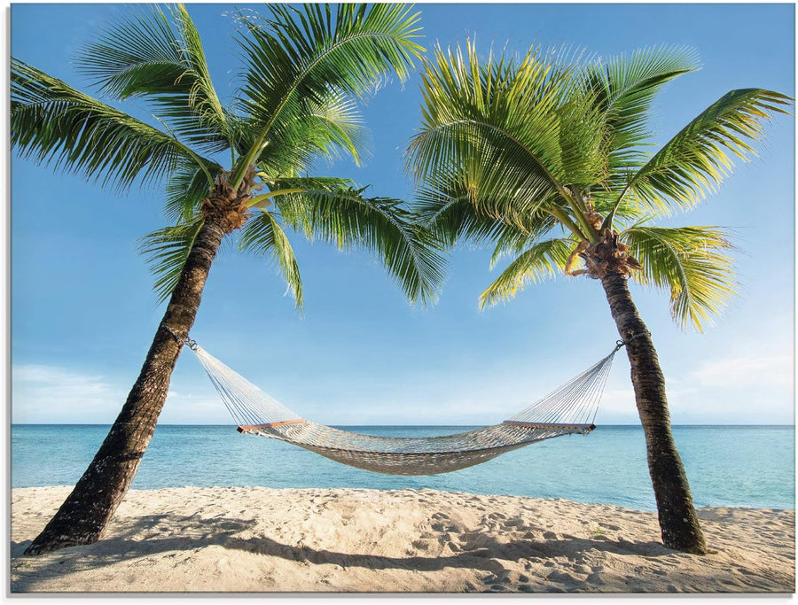 ARTland Glasbilder Wandbild Glas Bild einteilig 80x60 cm Querformat Strand Meer Südsee Karibik Palme