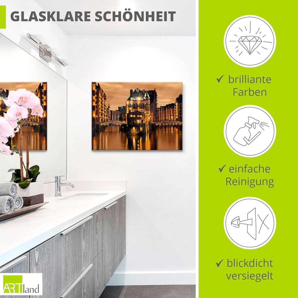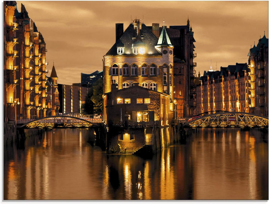 ARTland Glasbilder Wandbild Glas Bild einteilig 80x60 cm Querformat Städte Hamburg Speicherstadt Geb