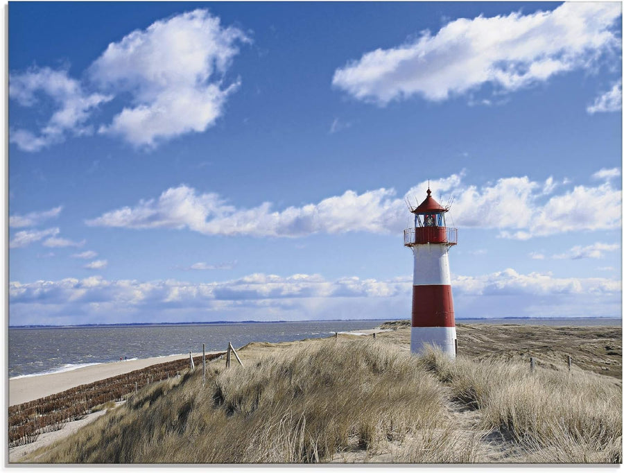 ARTland Glasbilder Wandbild Glas Bild einteilig 80x60 cm Querformat Strand Meer Nordsee Leuchtturm S