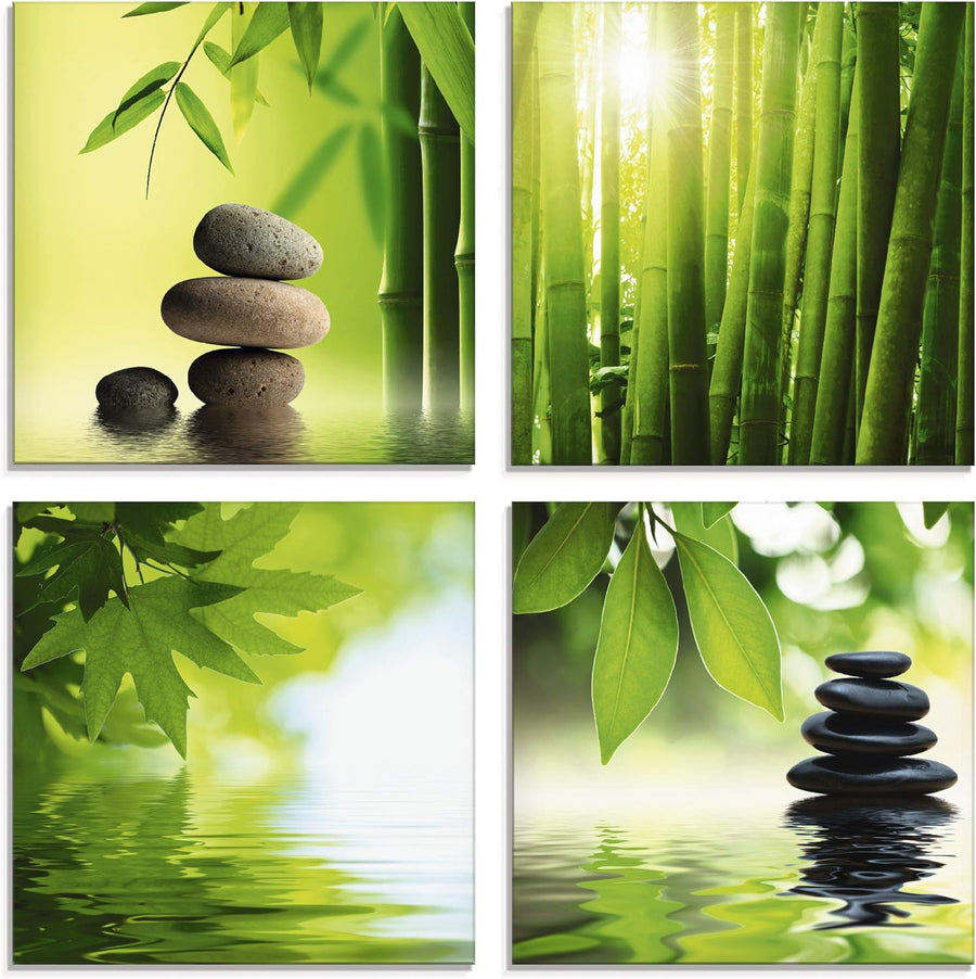ARTland Glasbilder Wandbild Glas Bild Set 4 teilig je 30x30 cm Quadratisch Asien Wellness Zen Pflanz