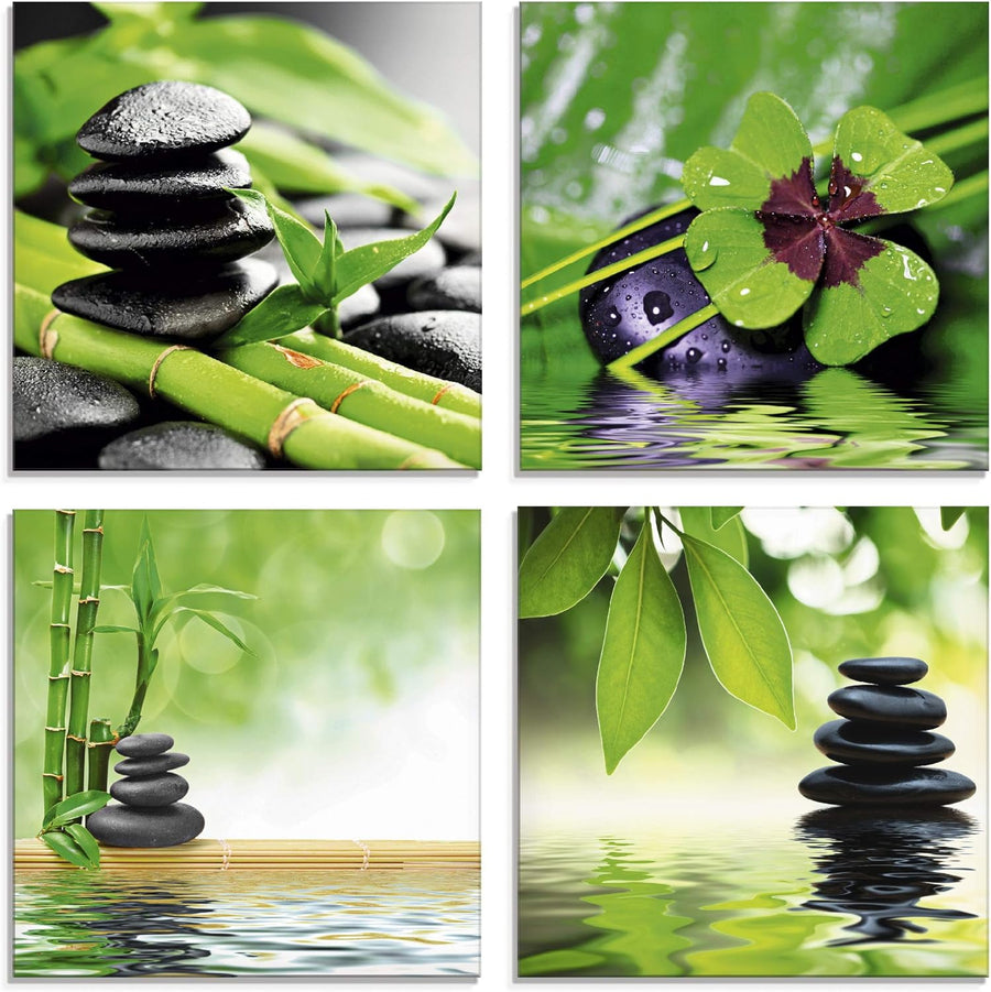 ARTland Glasbilder Wandbild Glas Bild Set 4 teilig je 30x30 cm Quadratisch Asien Wellness Zen Spa St