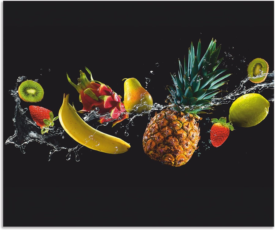 ARTland Glasbilder Wandbild Glas Bild Set 4 teilig je 20x20 cm Quadratisch Früchte im Wasser Obst Fr