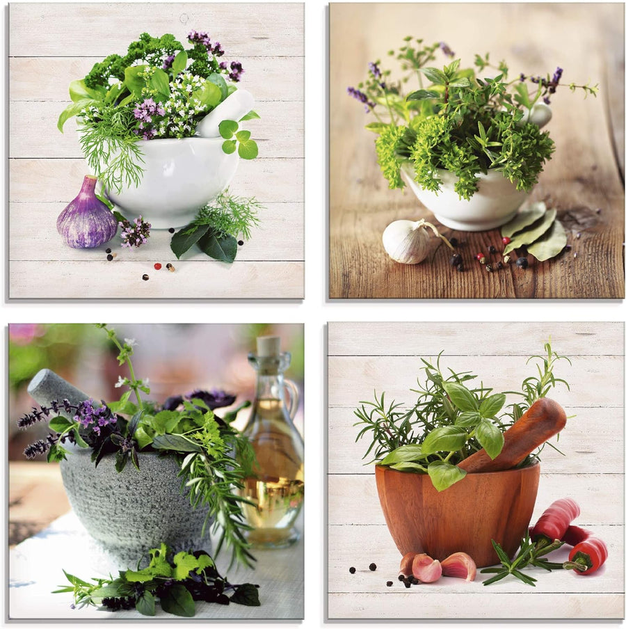 ARTland Glasbilder Wandbild Glas Bild Set 4 teilig je 40x40 cm Quadratisch Stillleben Küche Gewürze