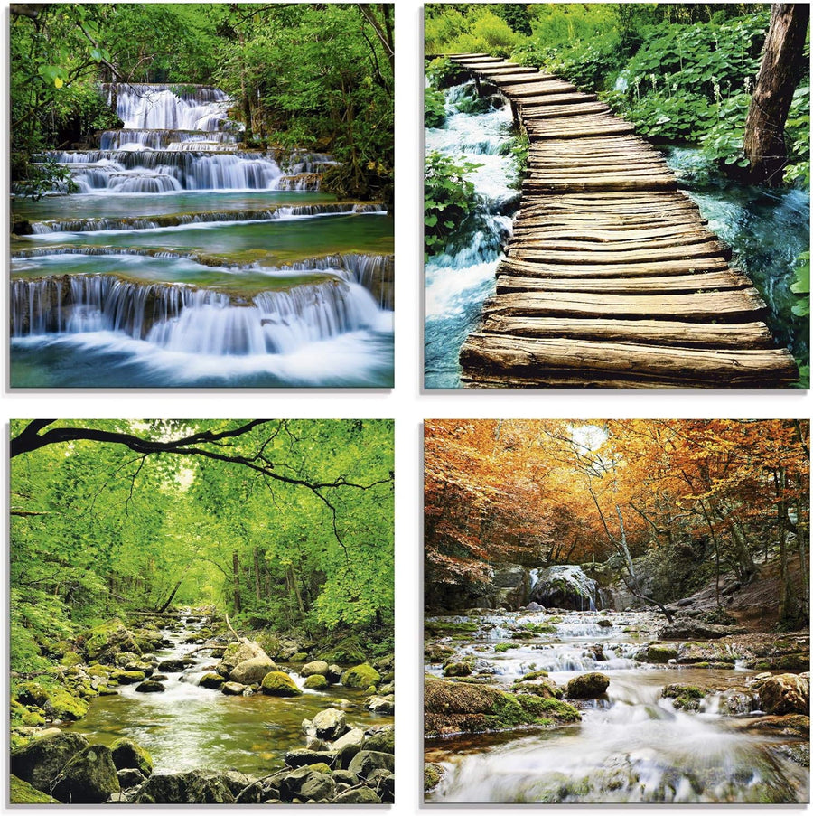 ARTland Glasbilder Wandbild Glas Bild Set 4 teilig je 30x30 cm Quadratisch Natur Wald Urwald Dschung