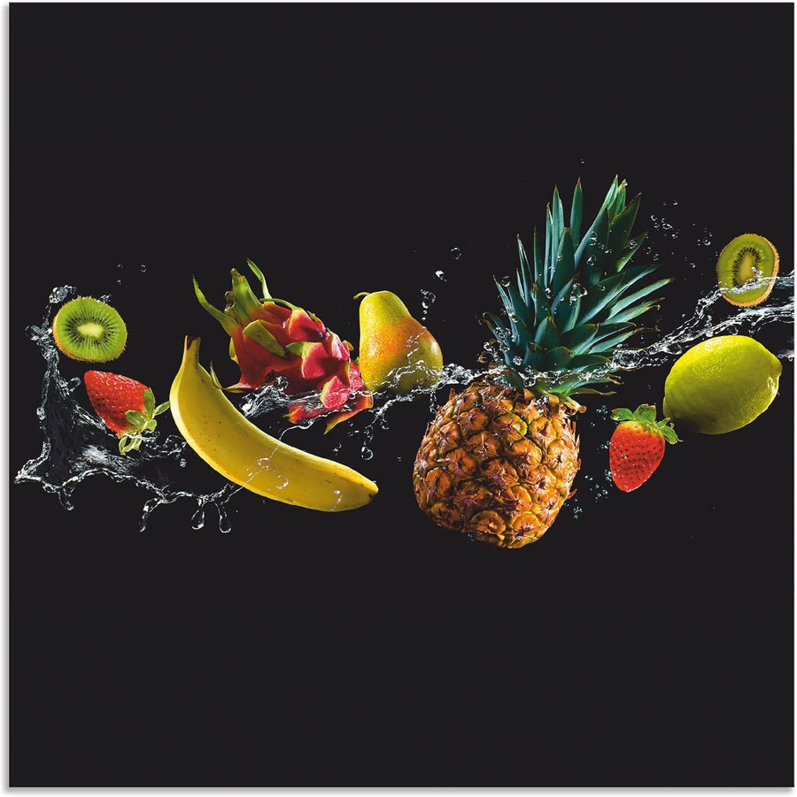 ARTland Glasbilder Wandbild Glas Bild Set 4 teilig je 30x30 cm Quadratisch Früchte im Wasser Obst Fr