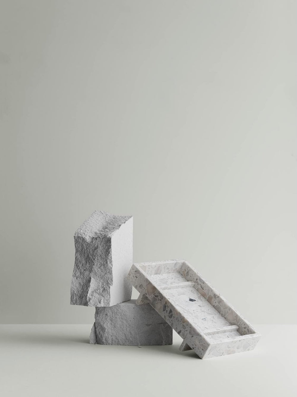 blomus Marmor Tablett -ABENTO- Serviertablett Organizer 7,5x30x18cm (LxBxH) (Nimbus Cloud) (66662)