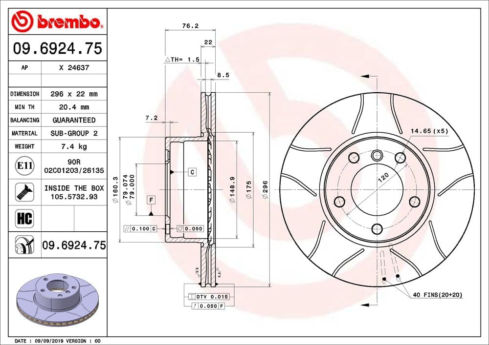 Brembo 09.6924.75 Vordere Bremsscheibe, Anzahl 2