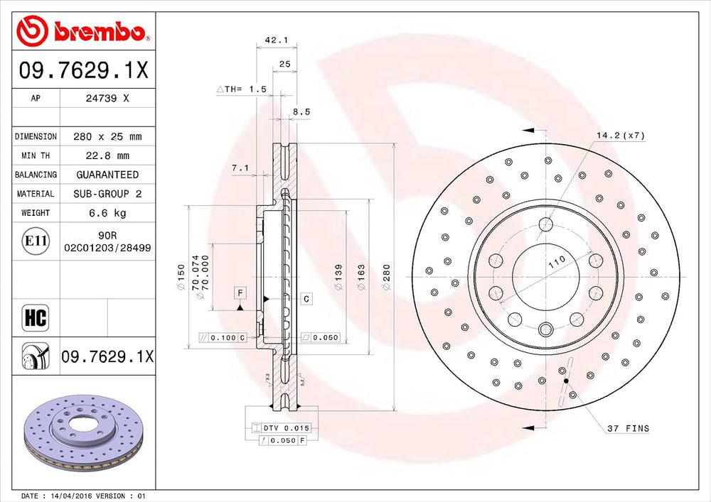 Brembo 09.7629.10 Bremsscheibe - Paar