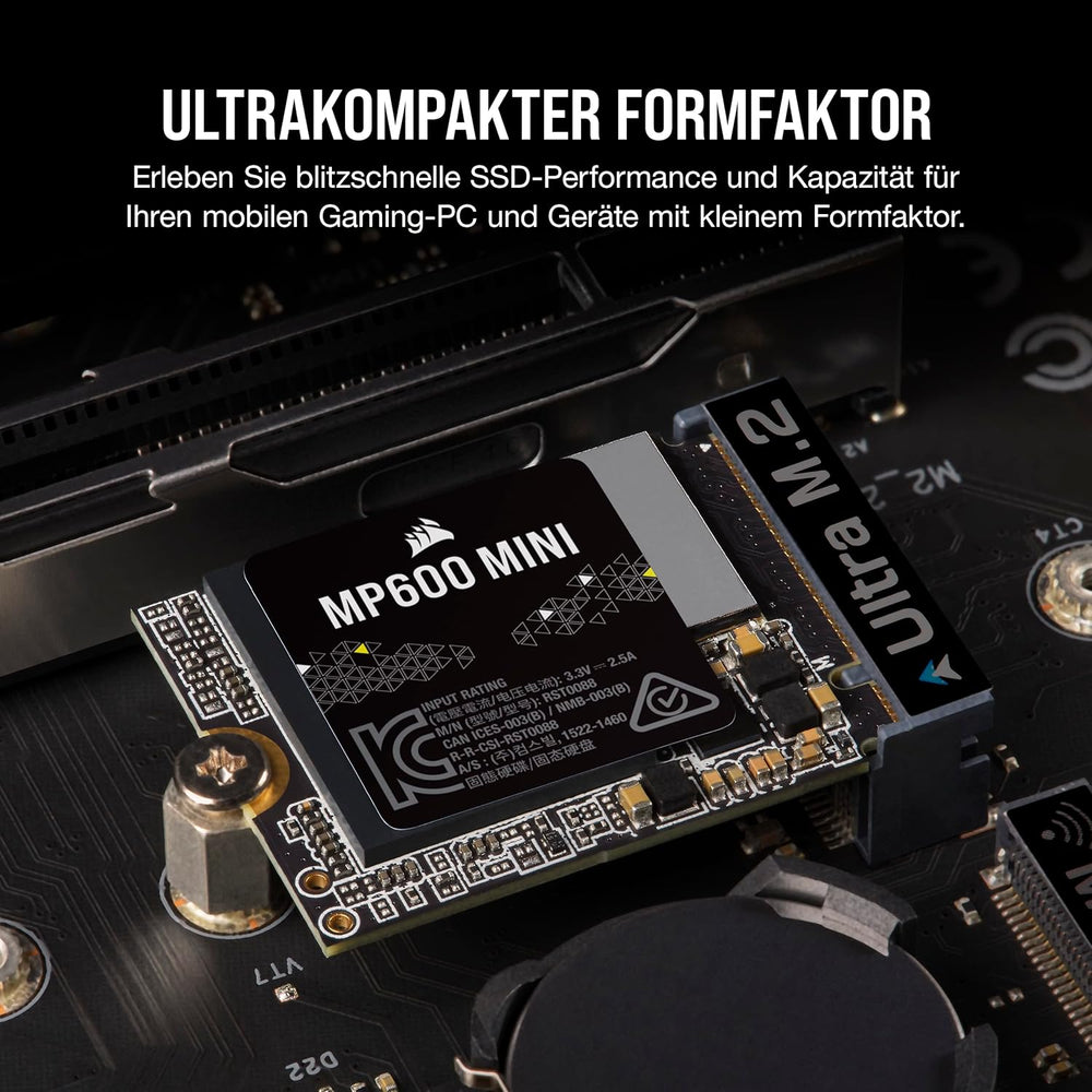 Corsair MP600 Mini 1TB M.2 NVMe PCIe x4 Gen4 2 SSD - M.2 2230 - Bis zu 4.800MB/Sek. Sequentielles Le