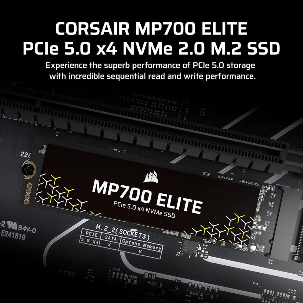 Corsair MP700 Elite 2TB PCIe 5.0 x4 NVMe M.2 SSD – Bis zu 10,000MB/sec – Hohe Dichte 3D TLC NAND – M