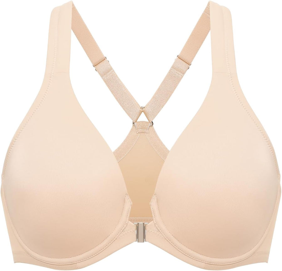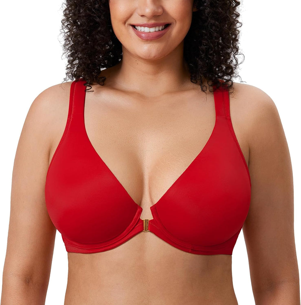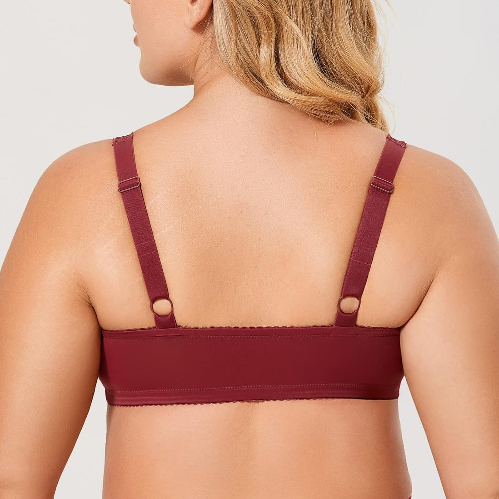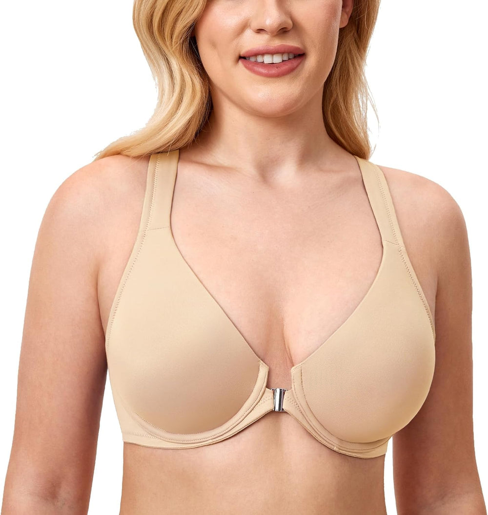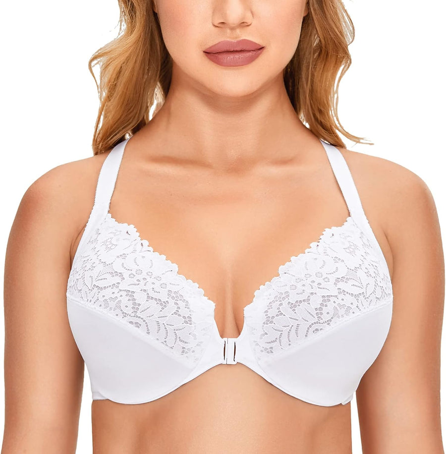 DELIMIRA Damen Vorderverschluss Racerback BH Grosse Grössen Bügel BHS Tiefer Ausschnitt Ungefüttert