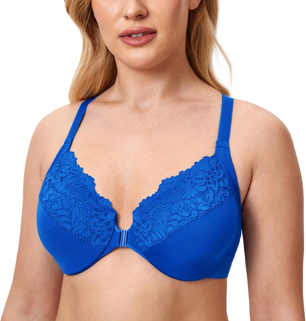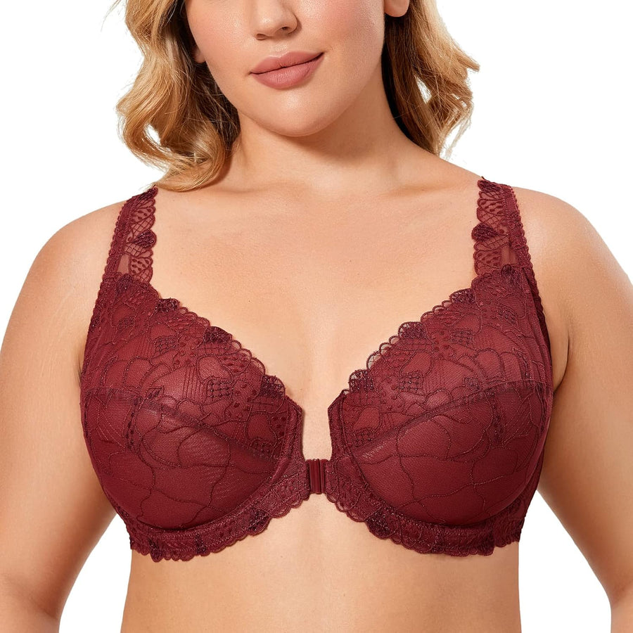 DELIMIRA Damen Vorderverschluss BH mit Bügel BHS Grosse Brüste Starker Halt Soft Spitzen U-Rücken Un