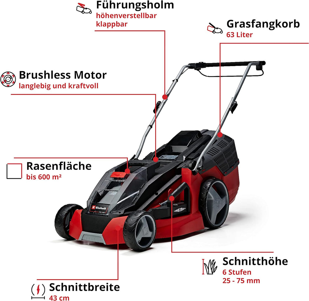 Einhell Akku-Rasenmäher GE-CM 43 Li M Kit Power X-Change (36V, 43 cm Schnittbreite, bis 600 m², Brus