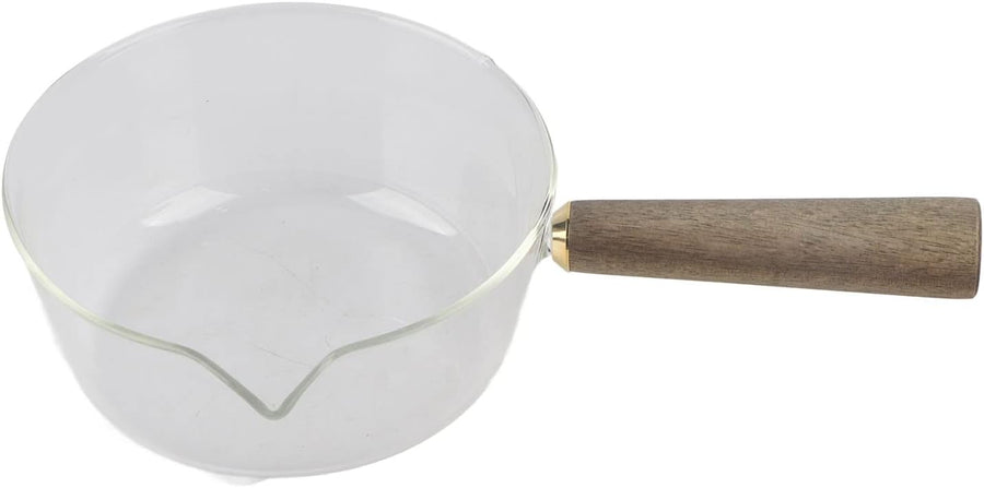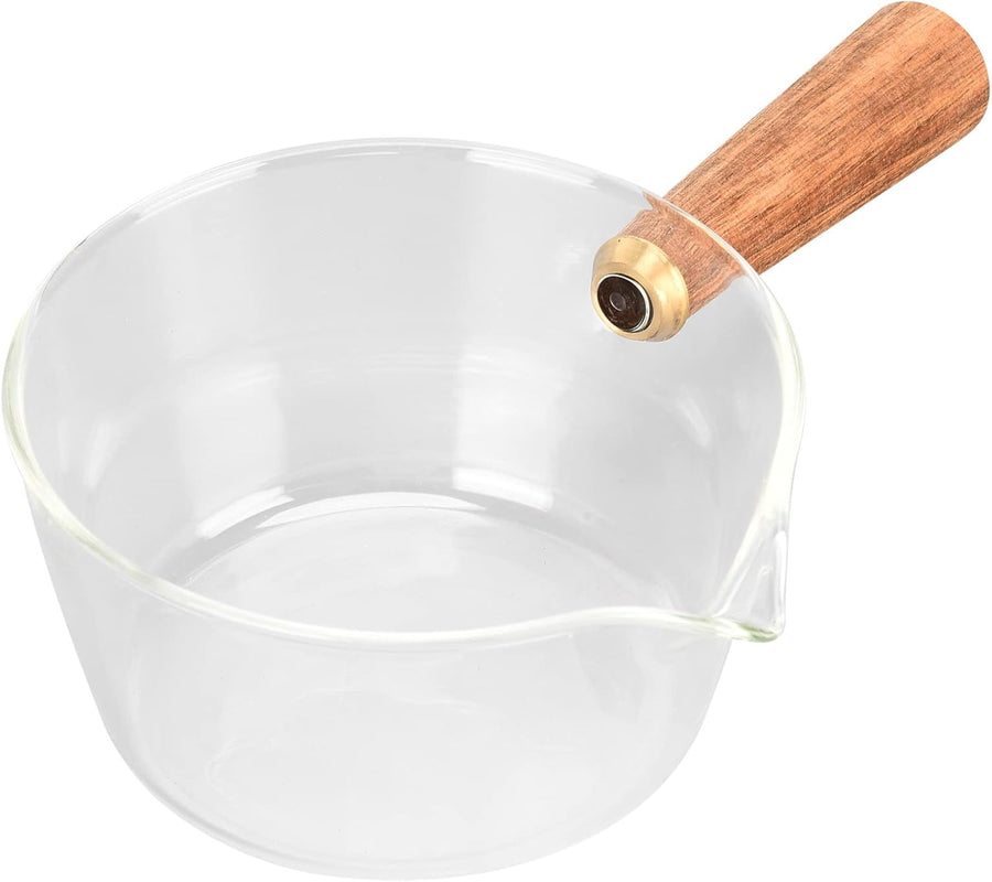 Stielkasserolle, Glas Milchtopf mit Holzgriff Kochtopf klein Stieltopf Nudeltopf mit V-förmige Tülle