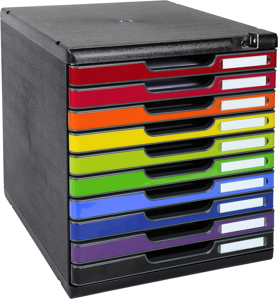 Exacompta 332798D Modulo A4 – 10 Schubladen mit Schlüssel Iderama Schwarz/Arlequin Gloss
