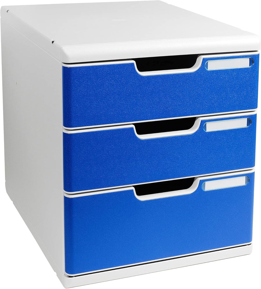 Exacompta 325003D Ablagesystem Modulo A4, 3 laden Classic, lichtgrau/blau Lichtgrau/Blau 3 Laden, Li