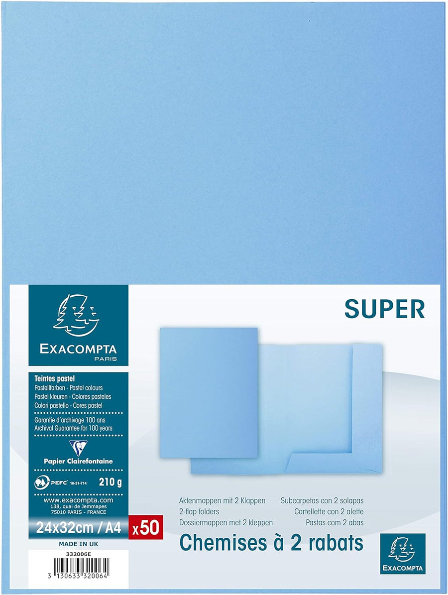 Exacompta 335000E Packung mit 50 Aktenmappen Super, 2 Klappen, Karton 210g/qm, praktisch und robust,