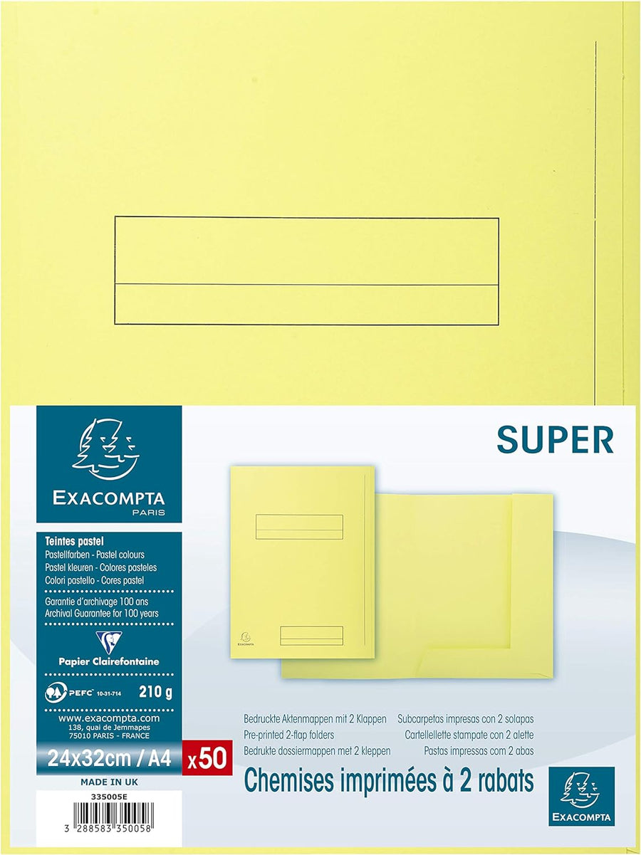 Exacompta 335002E Packung mit 50 Aktenmappen Super, 2 Klappen, Karton 210g/qm, praktisch und robust,