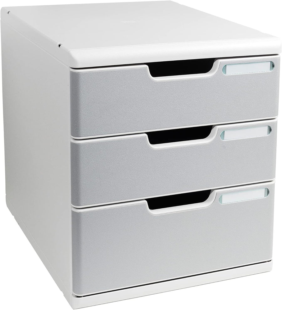 Exacompta 325014D Ablagebox Modulo, für DIN A4, 3 Schubladen, robust und praktisch, Lichtgrau/Schwar