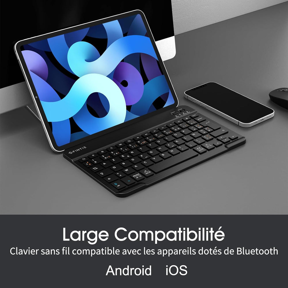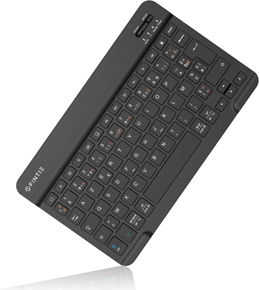 Fintie Ultra Dünn (4mm) Bluetooth Tastatur mit französischem Layout AZERTY für iPad/Samsung Galaxy T