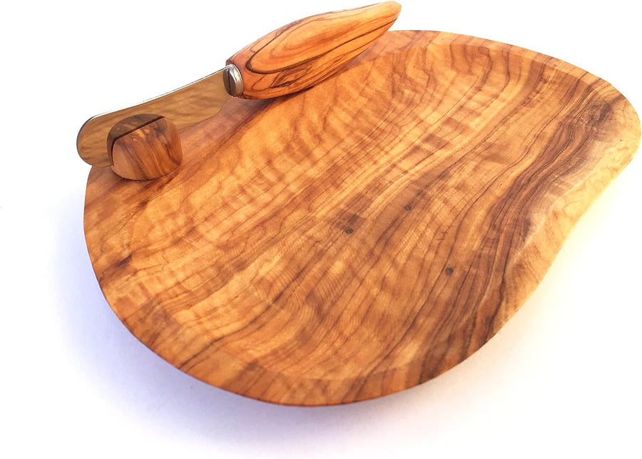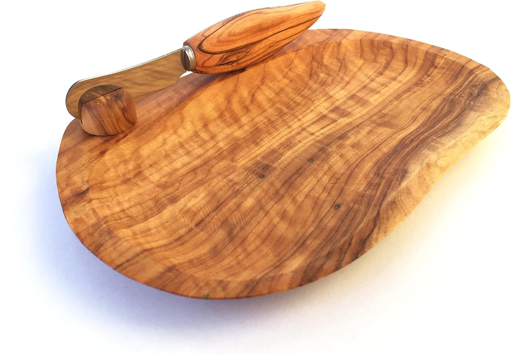 Generisch 2er Set Butterteller mit Buttermesser, Schale, Teller, aus Olivenholz Handarbeit