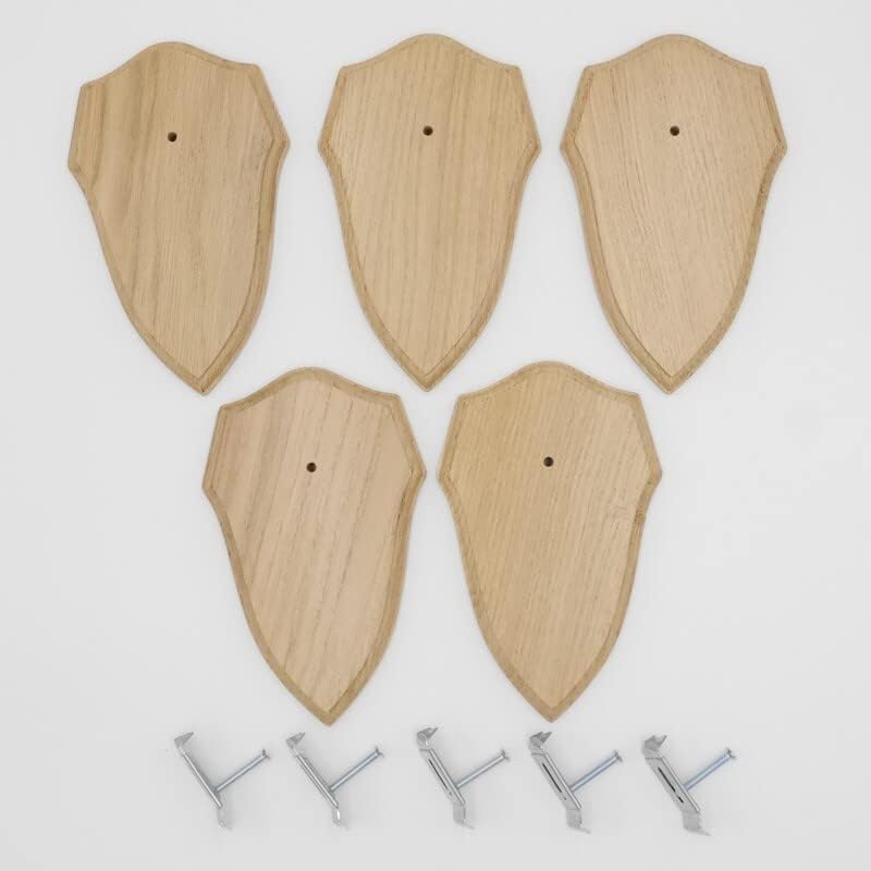 Generisch 5 Stück Trophäenschilder Wappenform AF 19 cm x 11 cm Spitz Eiche hell für REH Trophäen mit