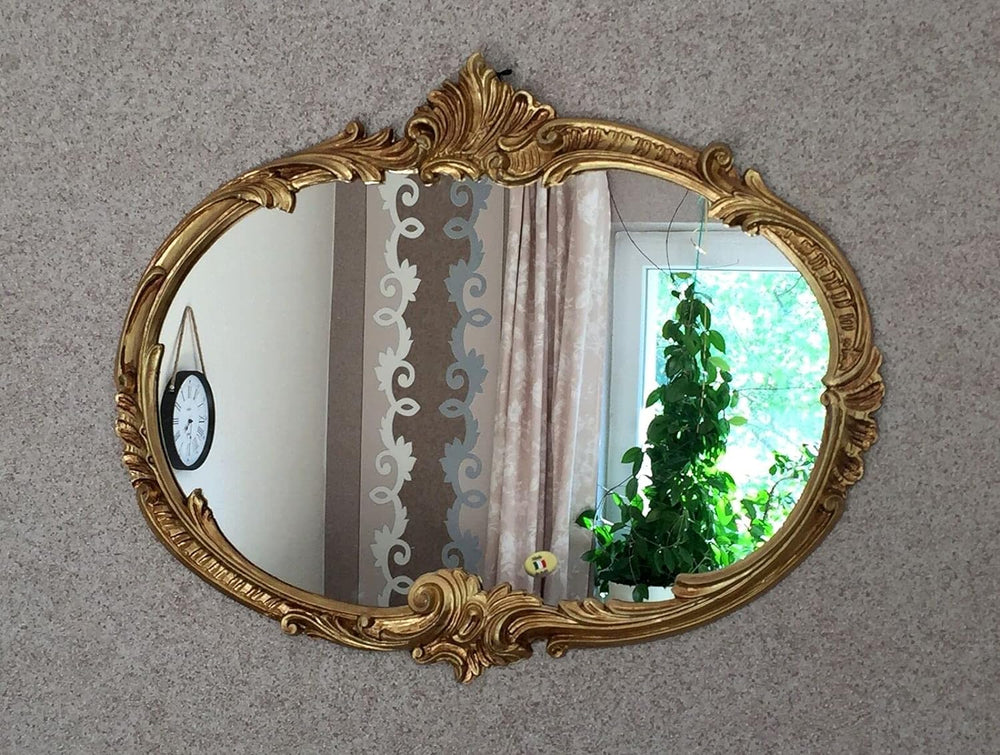 Generisch Barockspiegel Wandspiegel Antik Gold Oval Barock Badspiegel Spiegel 52 x 42cm Flurspiegel