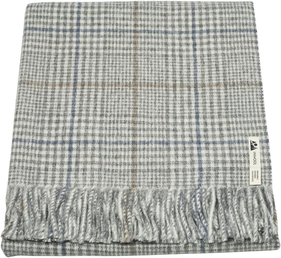 Generisch Alpaka Decke Wolldecke Kuscheldecke 150x200cm - Design Bern Karo (Hellgrau), Hellgrau