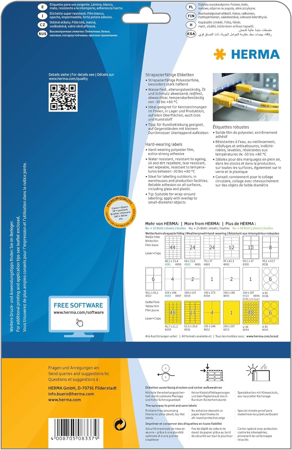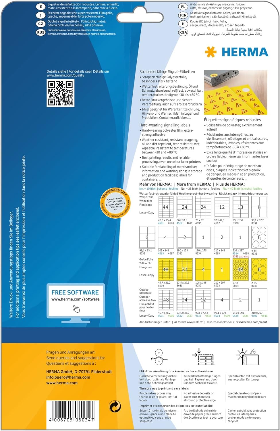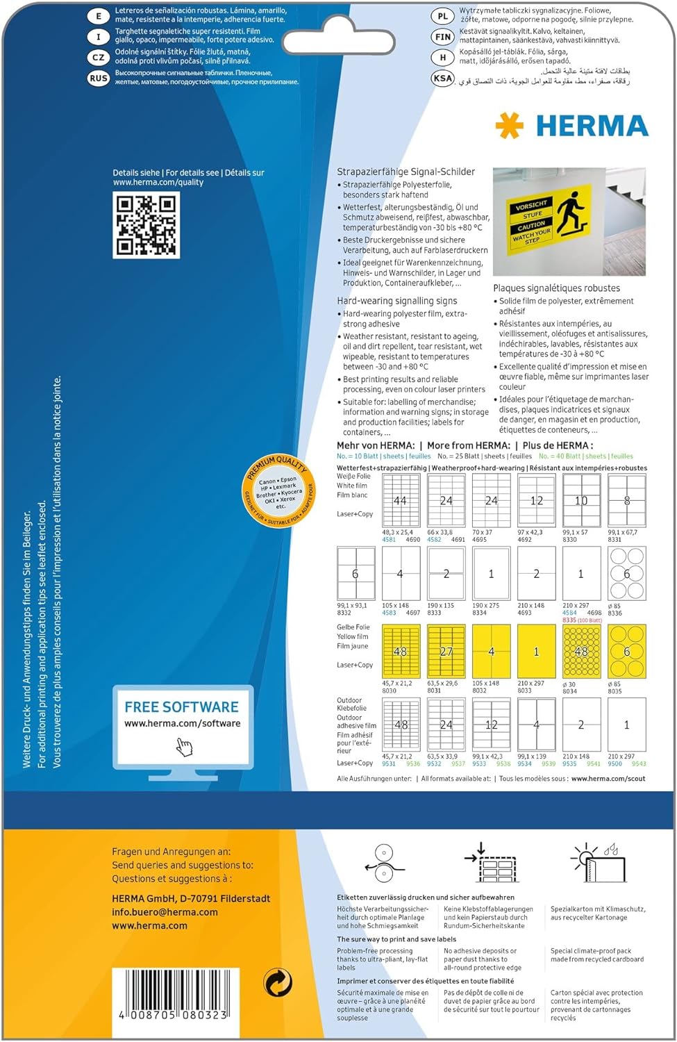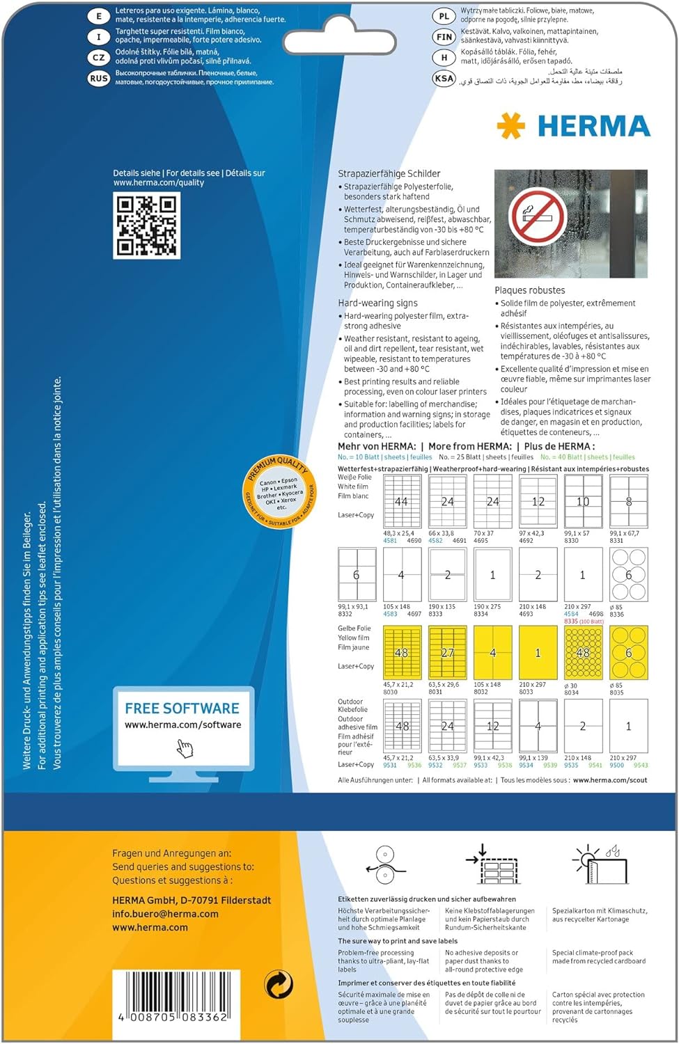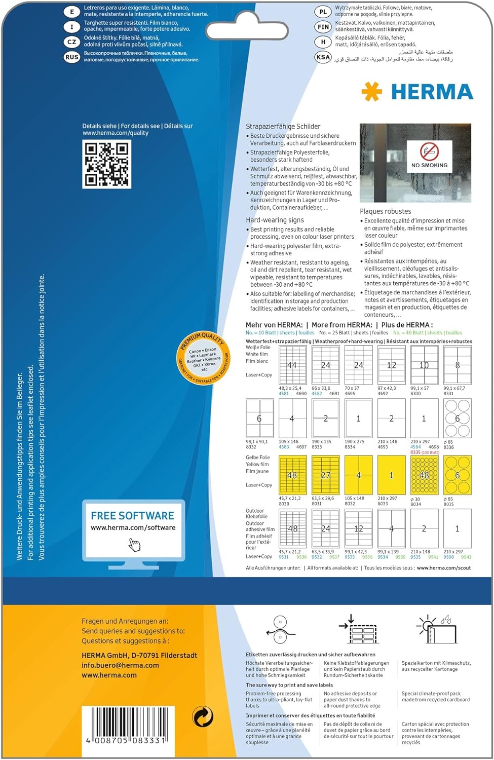 HERMA 8334 Wetterfeste Folienetiketten, 25 Blatt, 190 x 275 mm, 1 Stück pro A4 Bogen, 25 Aufkleber,